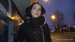 Public agent picks up pierced lips brunette Euro hottie at night on the streets and then in his car she flashes tits and then fucks his big dick