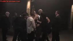 Public BDSM slut throat and pussyfucked for perv voyeurs