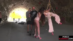 Public whipped suspension bondage slut deepthroats outdoor