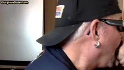 Real gloryhole DILF sucks cock at home in amateur closeup