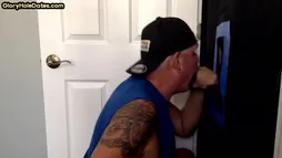 Real tattooed gloryhole DILF sucks cock in homemade sex