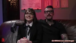 Hot brunette shemale slave Sadie Lola is bound blindfolded and gagged then down on her knees made deep throat suck tattooed big cock to her master H3ll4Sl00tz
