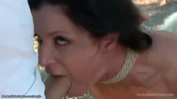 Fat fuck-stick cowboy James Deen binds fabulous dark haired COUGAR India Summer on his ranch outdoors and with gigantic bone smashes her throat and vagina