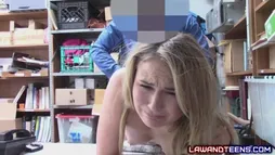Teenage thief in school uniform was so afraid to go in jail she accepted the deal of a perverted loss prevention officer! She gave him the right to fuck her and he didn't called the cops!