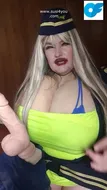 See susi i a nasty costume of a stewardess. She has a fat cock toy in front of her She is teasing you pulling out er tits# she is teasing you with her tits Then she is rubbing and squeezing your cock imagine... See the toy being worked by her dirrty stwardess playing giving you a nice joi