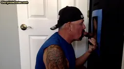 Tattooed amateur DILF blows cock in homemade gloryhole BJ