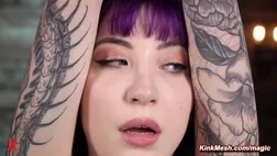 Tattooed slave Charlotte Sartre tied against the column with her hands raised as The Pope turns her skin bright red with a flogger then vibrates her pussy in the dark dungeon