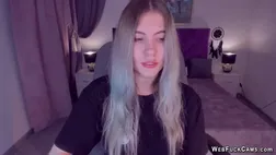 Long haired blonde amateur Ukrainian teen SimaDark in black outfit chats on live solo webcam show then strips and shows tattoos and natural tits to her fans