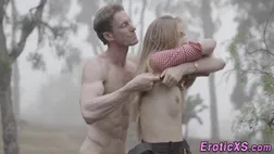 Teenie rails bone outdoors in the forest