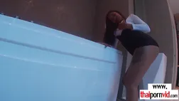 Petite amateur Thai teen Cherry with small tits is shaking her bubble butt then she goes to the jacuzzi where she grabs her european lovers big white cock to give him an exotic blowjob and and take a ride on it