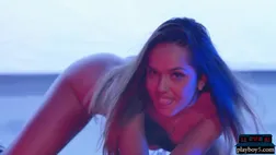 Two latina gym honeys Esperanza Del Horno and Tory Bellamy hot dancing and stripping completely naked for Playboy