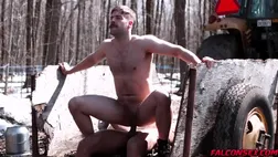 Upton Sterling wanders the forest rounding up collected sap from his maple trees, he quickly becomes fixated on the impressive piece of wood co-worker Kenzo Alverez is hiding in his pants. Sterling drops down to suck off Kenzo. Next, Upton bareback fuck Kenzo's smooth hole