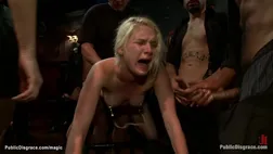 Mistress Princess Donna Dolore puts in eyes of hot blonde slave Natasha Lyn black contact lenses and then drags her in public where hse is fucked by big dicks