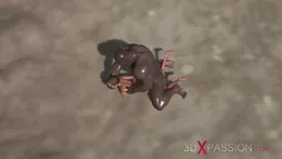 Youthfull ebony nymph torn up rigid by phat ebony sausage outdoor on a insane island