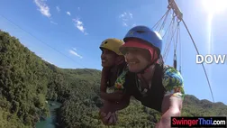 Ziplining amateur couple made a horny sex tape together once back home His Thai girlfriend was super cute and fun and likes a good fuck too! He recorded her sucking his big dick and fucking her from behind doggystyle just to thank him for the fun day!